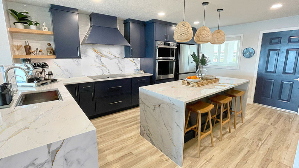 Premium Taj Mahal printed quartz slabs manufactured in Vietnam. Perfect for luxurious kitchen islands, countertops, and commercial projects. Exported to the USA with competitive pricing and lower import duties.